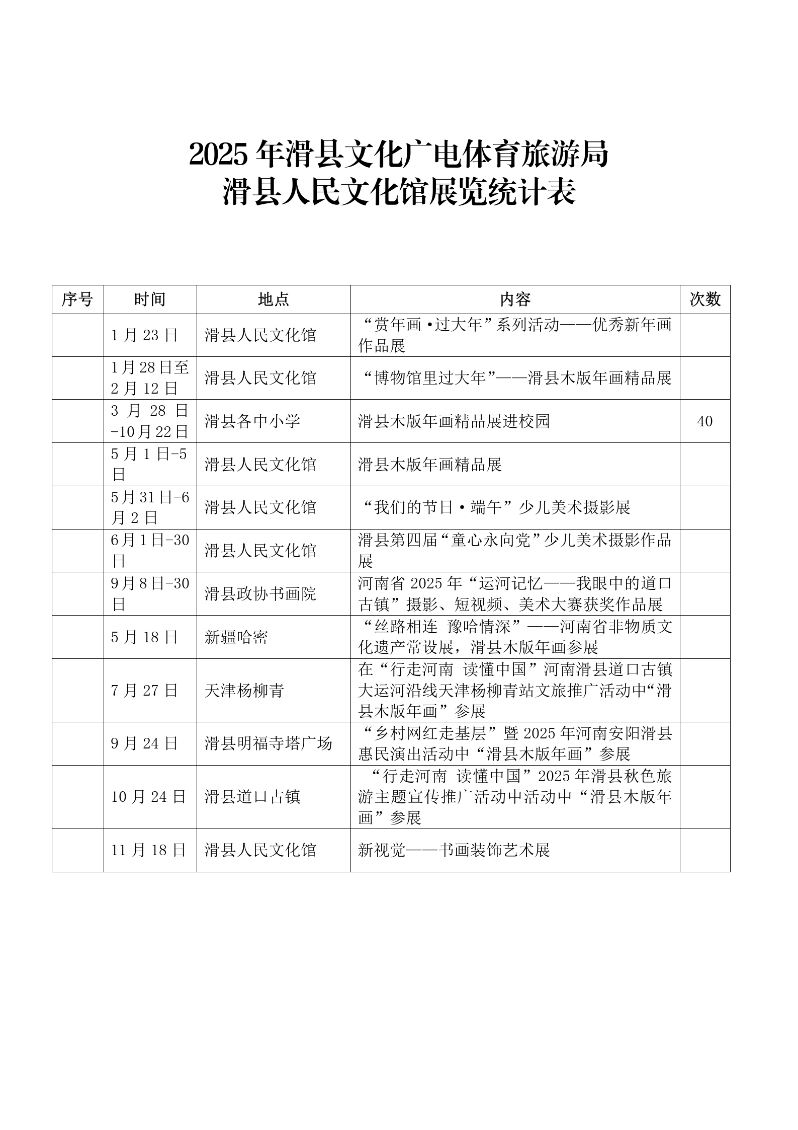 2025年滑县文化广电体育旅游局展览统计表