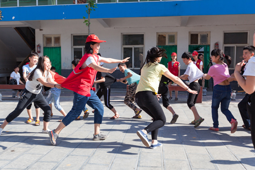 5月27日,城关镇特殊教育学校校园内,老鹰捉小鸡游戏正在进行。国网滑县供电公司“小红帽”青年志愿者们在端午节前夕为孩子们送去了关心和温暖,提前和孩子们一起度过了一个快乐的端午节。