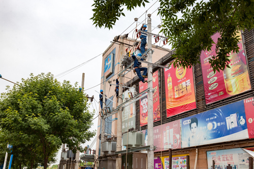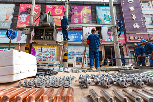 5月18日,县城区英民路中段,农配网升级改造施工现场,一排排摆放整齐的线夹、线卡和工具,着装整齐划一让人眼前一亮。“登杆前再检查一下安全带卡口是否卡紧,要确保安全无误……”,现场工作负责人密切注视施工过程的每一个细节,不时发出指令,提醒施工人员安全作业,以确保工程能安全、高质量的完成。