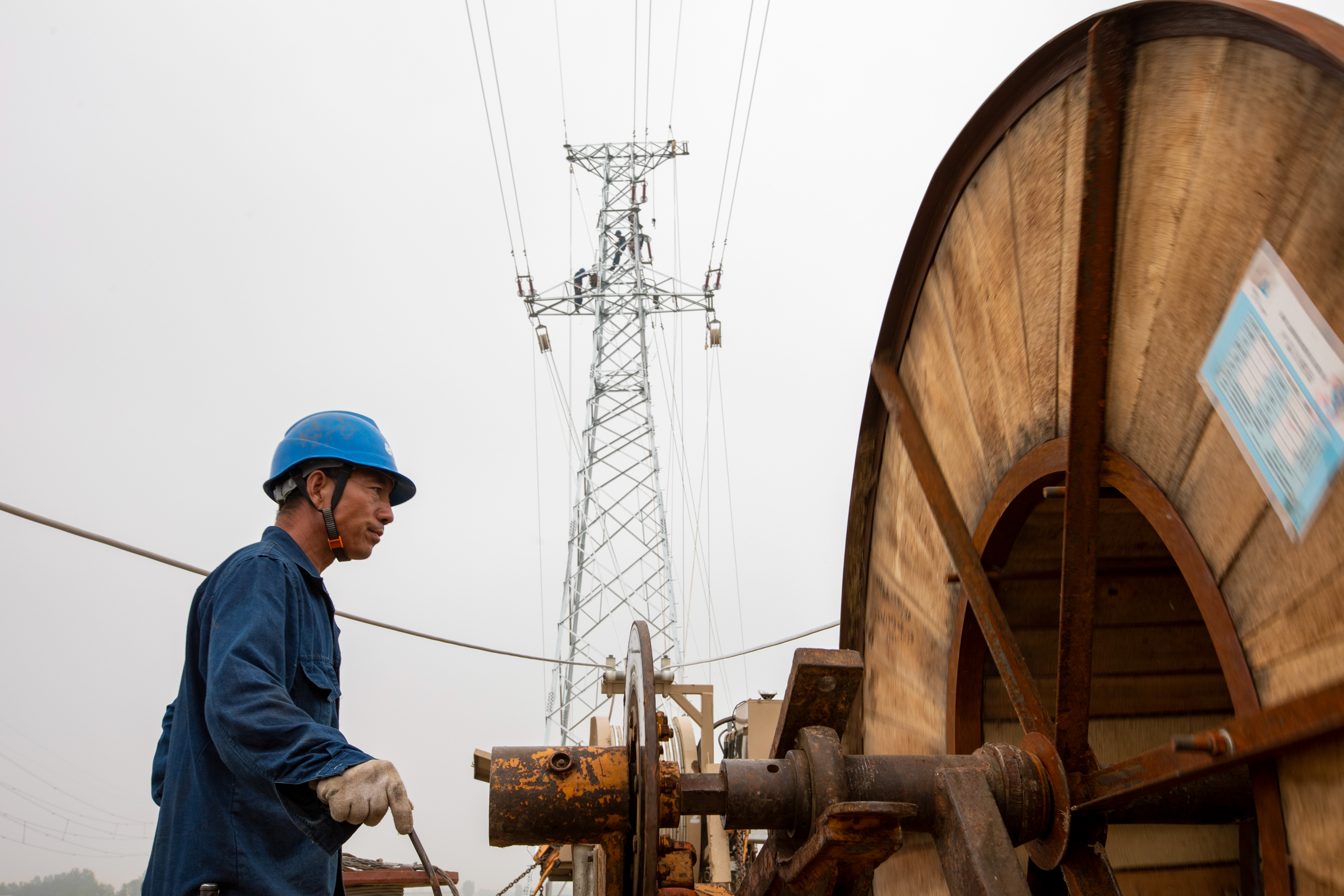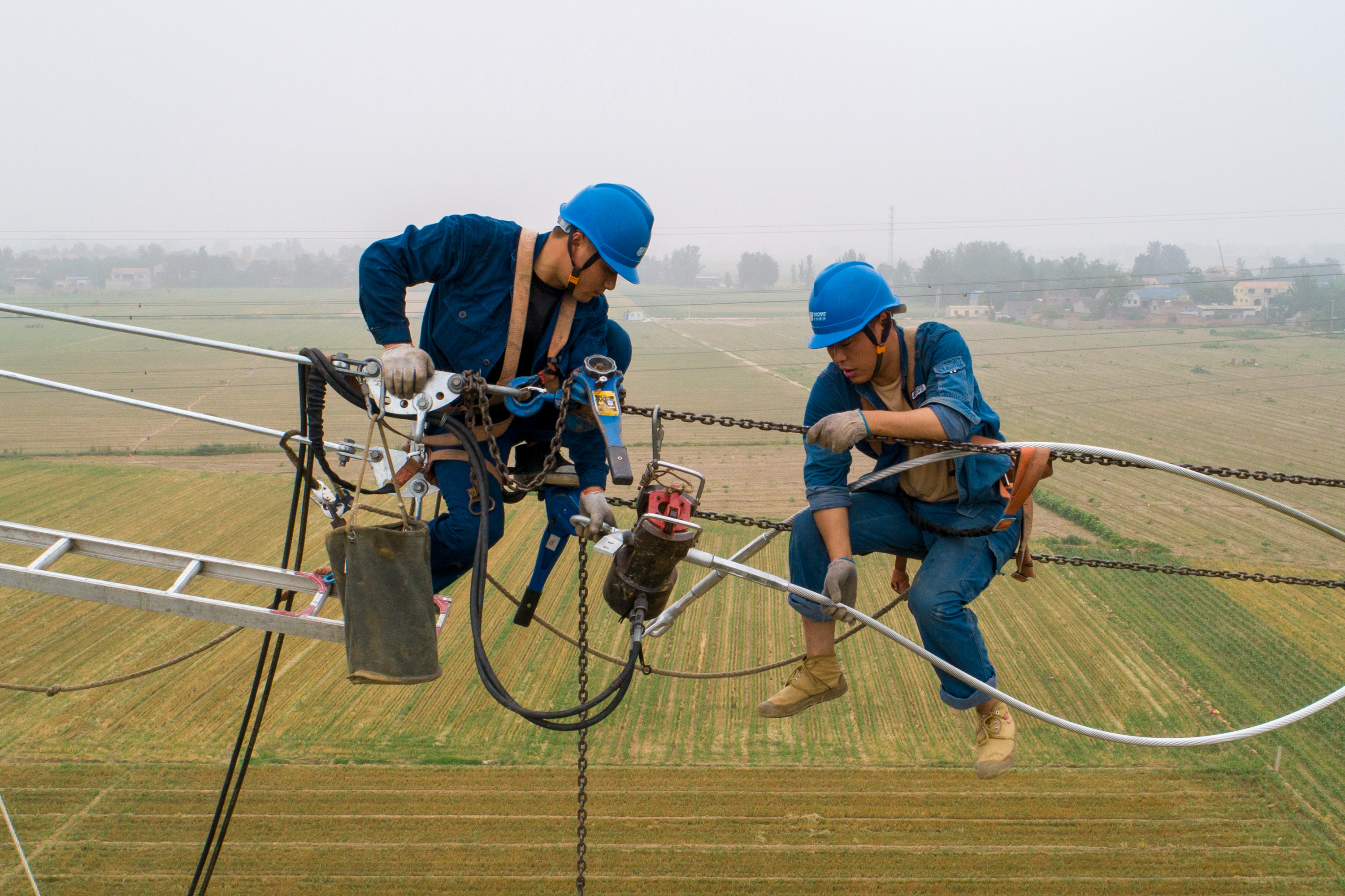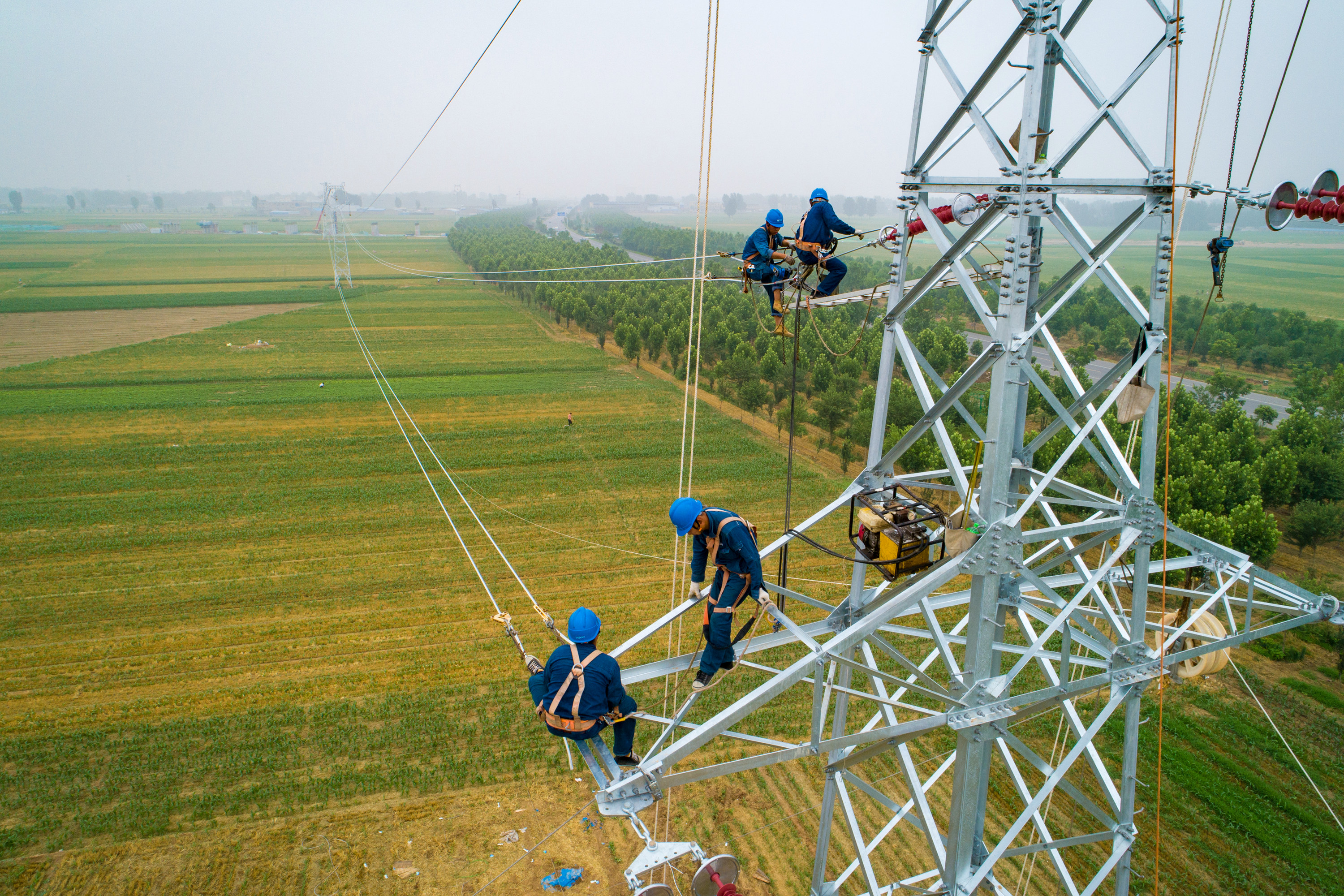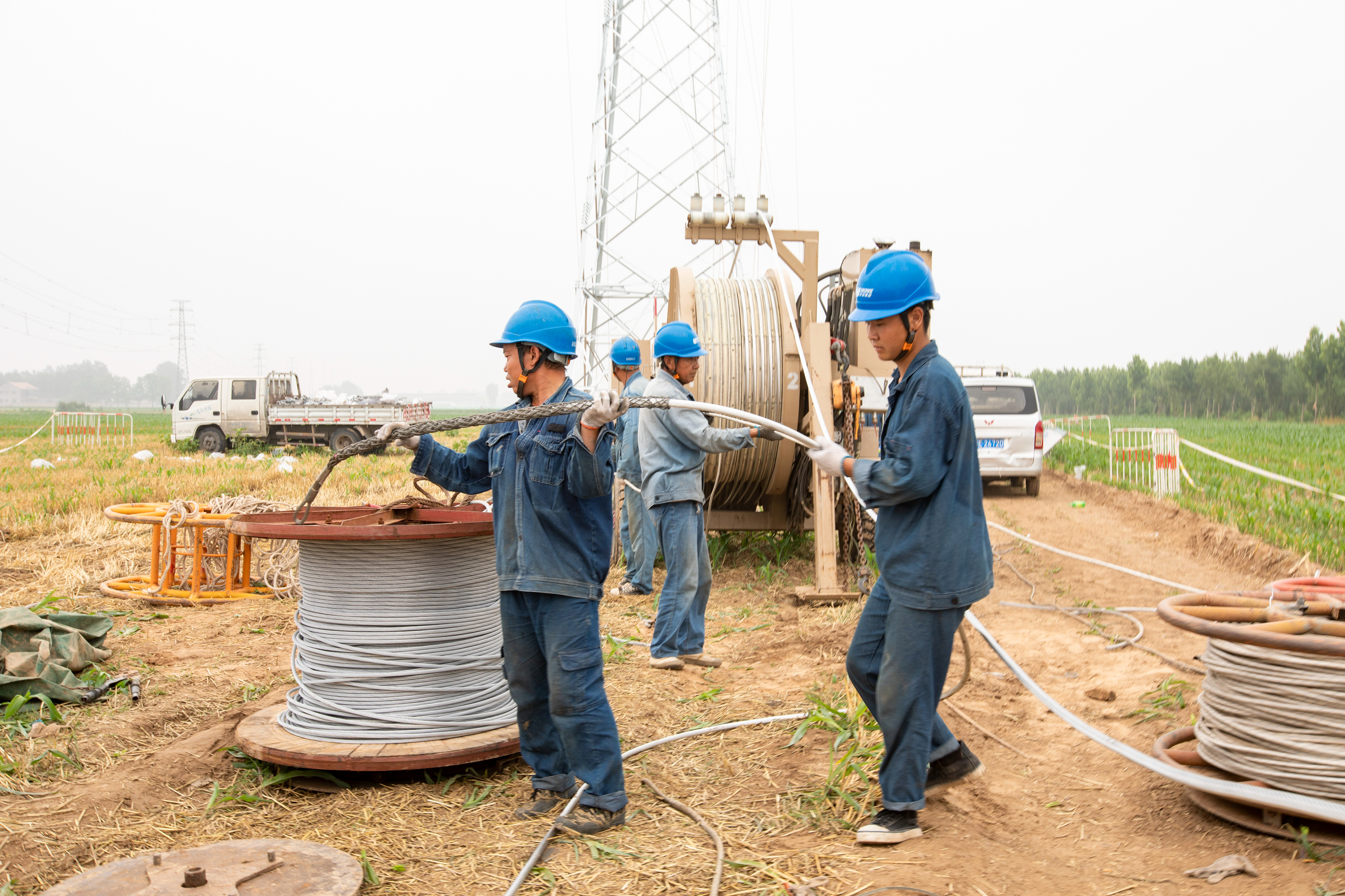 6月28日,天刚亮,鱼肚白的天空,薄雾冥冥。趁着早晨的凉意,30多名电力工人在306省道滑县老店镇常屯村处,正在新建110千伏楚老输电线路实施架线作业,加快工程建设步伐,改善电网架构,助力地方经济社会高质量发展。