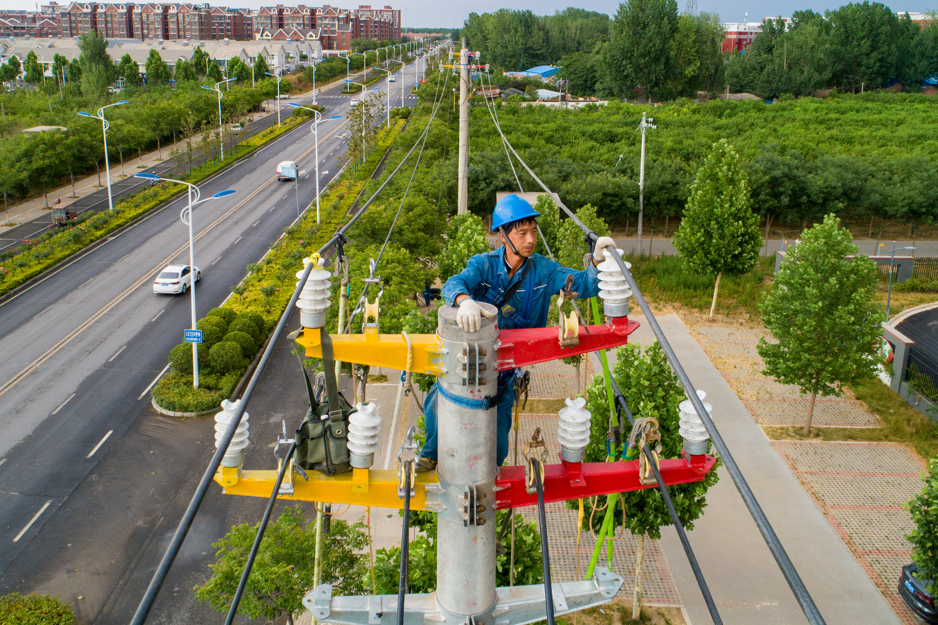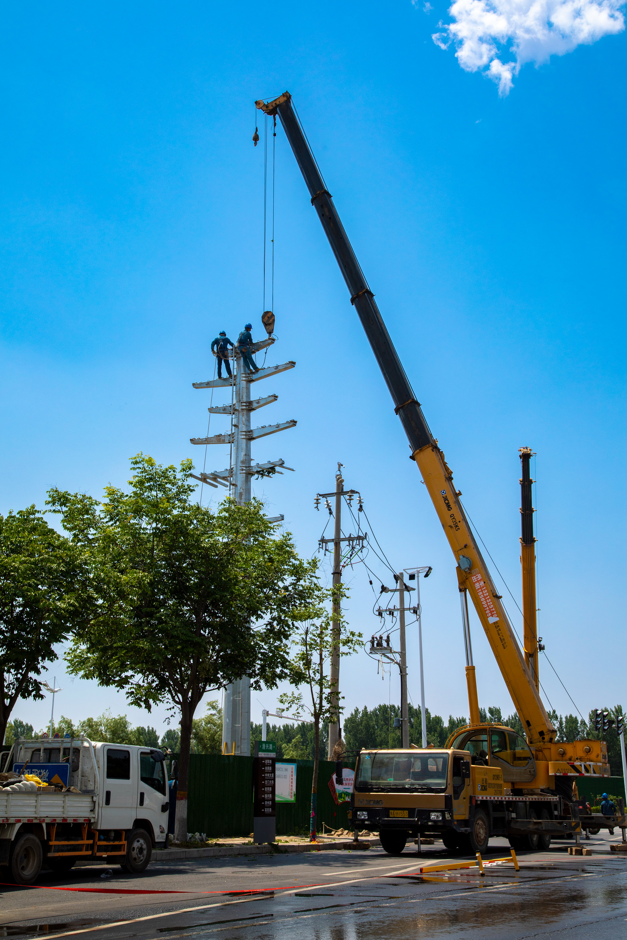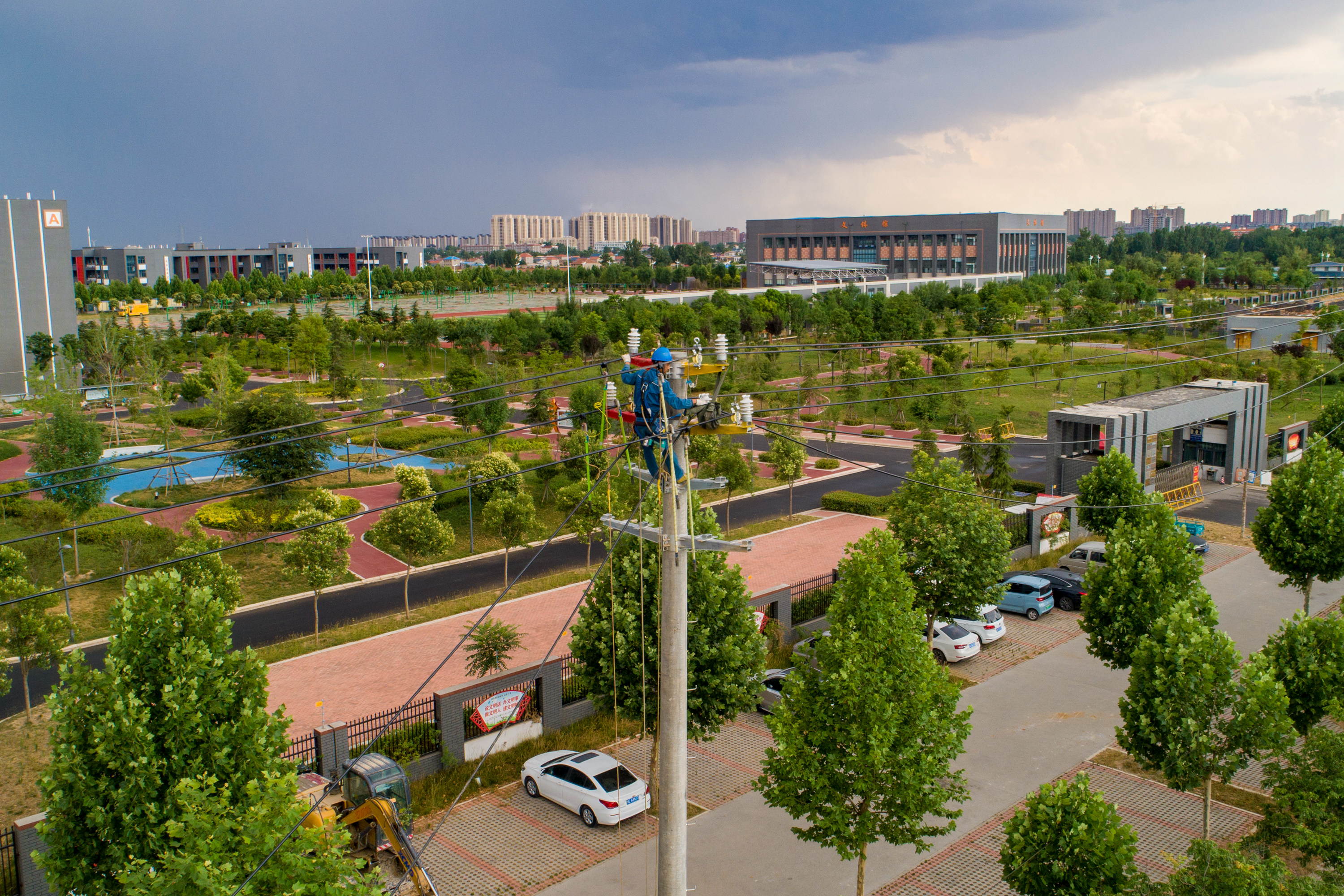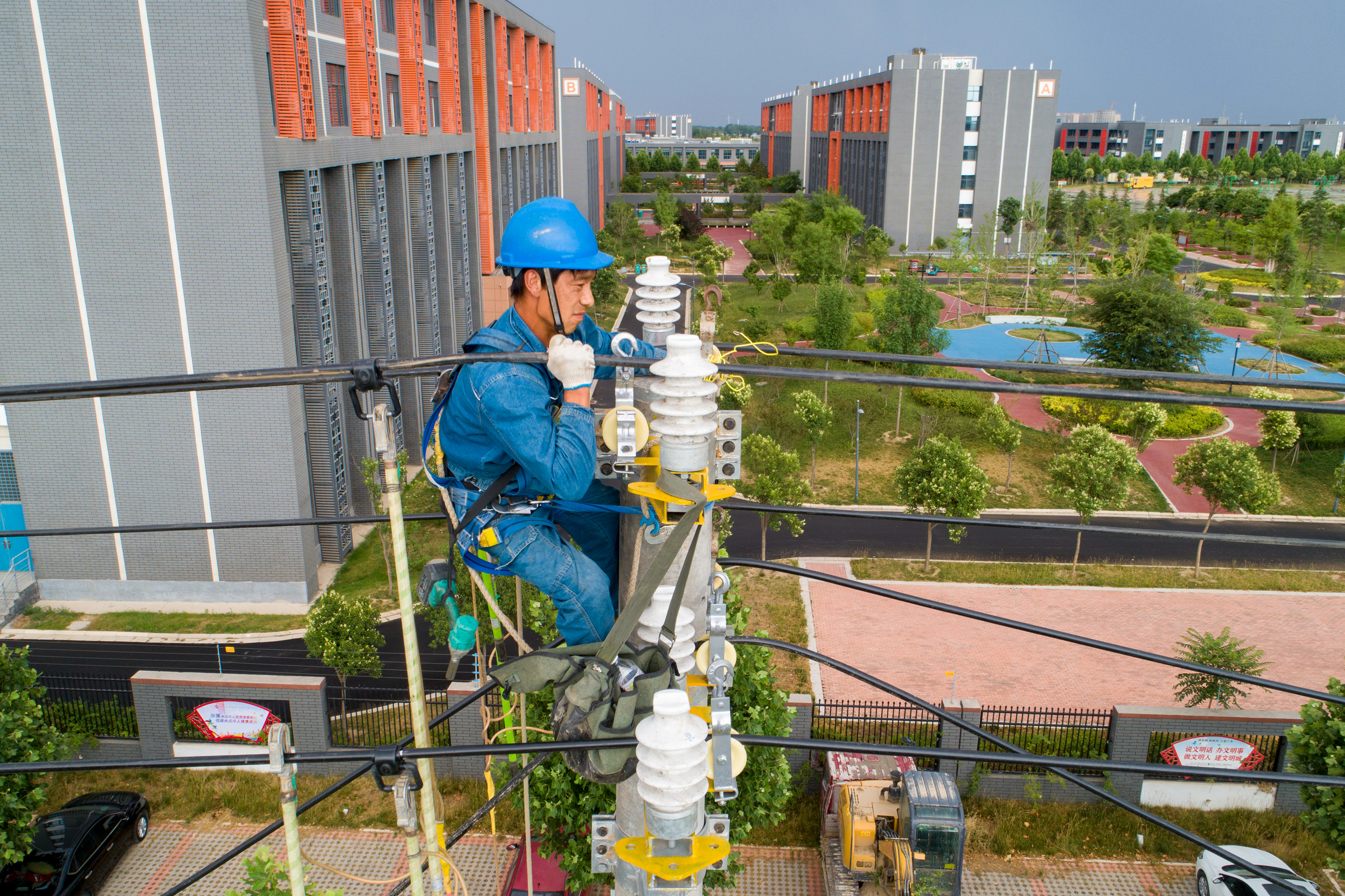 学府供电线路从110千伏薛庄变电站站出线,将原共用线路拆除后,新建架空10千伏线路1600米、地下电缆900米,新建电杆及铁塔16基,电力导线由原来的95绝缘线升级为240绝缘导线。电力工人从6月14日凌晨5时开始,全力施工作业,计划于23时全部完工送电。新建完成后,将极大提升两个学校的供电能力。