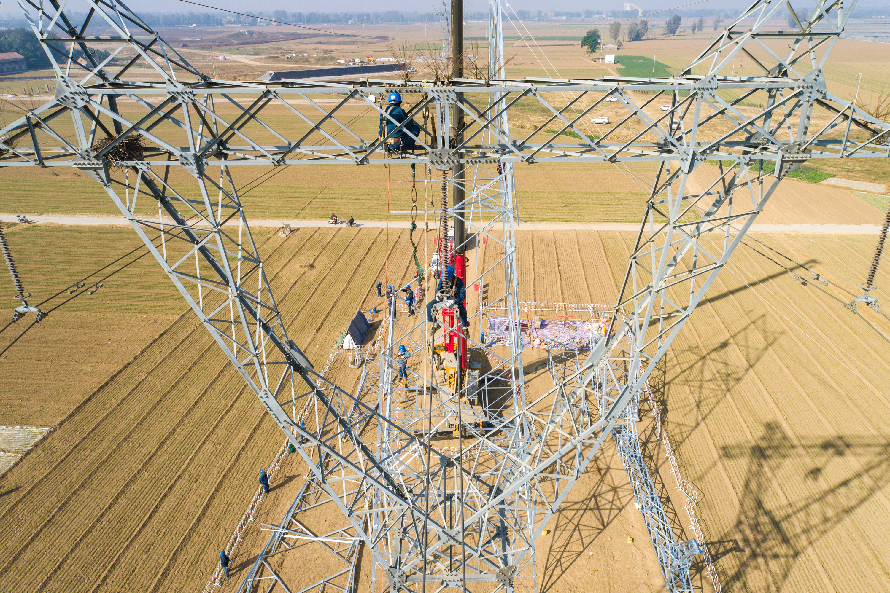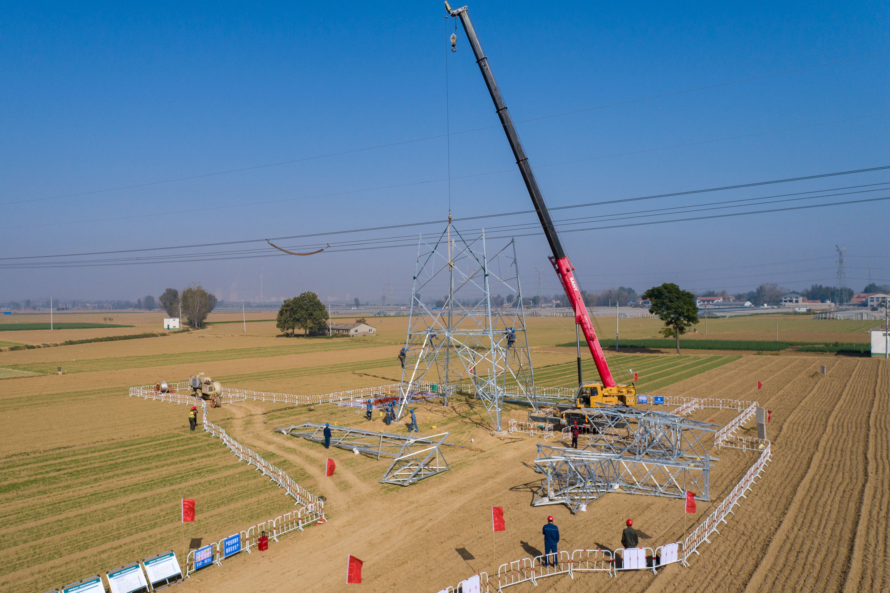 10月26日,在我县城关镇珠照村安罗高速公路旁,国网滑县供电公司组织30名电力工人对220千伏楚蓝线路43号至45号杆实施迁改升高作业。
