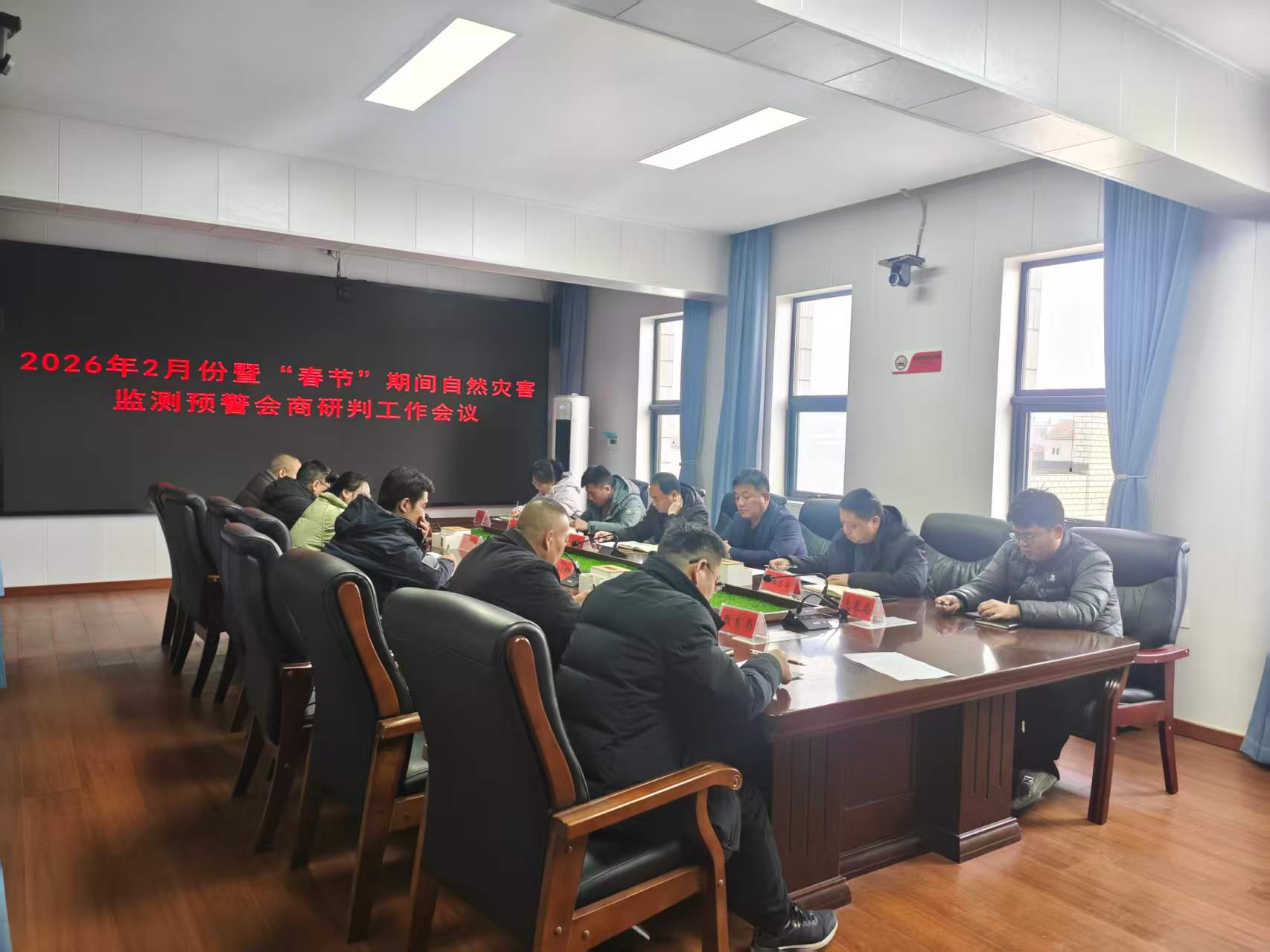 2月10日上午,县安全生产和防灾减灾救灾委员会办公室组织召开2026年2月份暨春节期间全县自然灾害监测预警会商研判工作会议,县应急、气象、林业、农业农村等重点涉灾部门相关股室负责人参加会议。会上,各部门认真总结了本行业领域1月份自然灾害情况,分析研判了2026年2月份暨春节期间我县自然灾害风险及重大灾害风险趋势,提出了具体防范措施意见和建议。