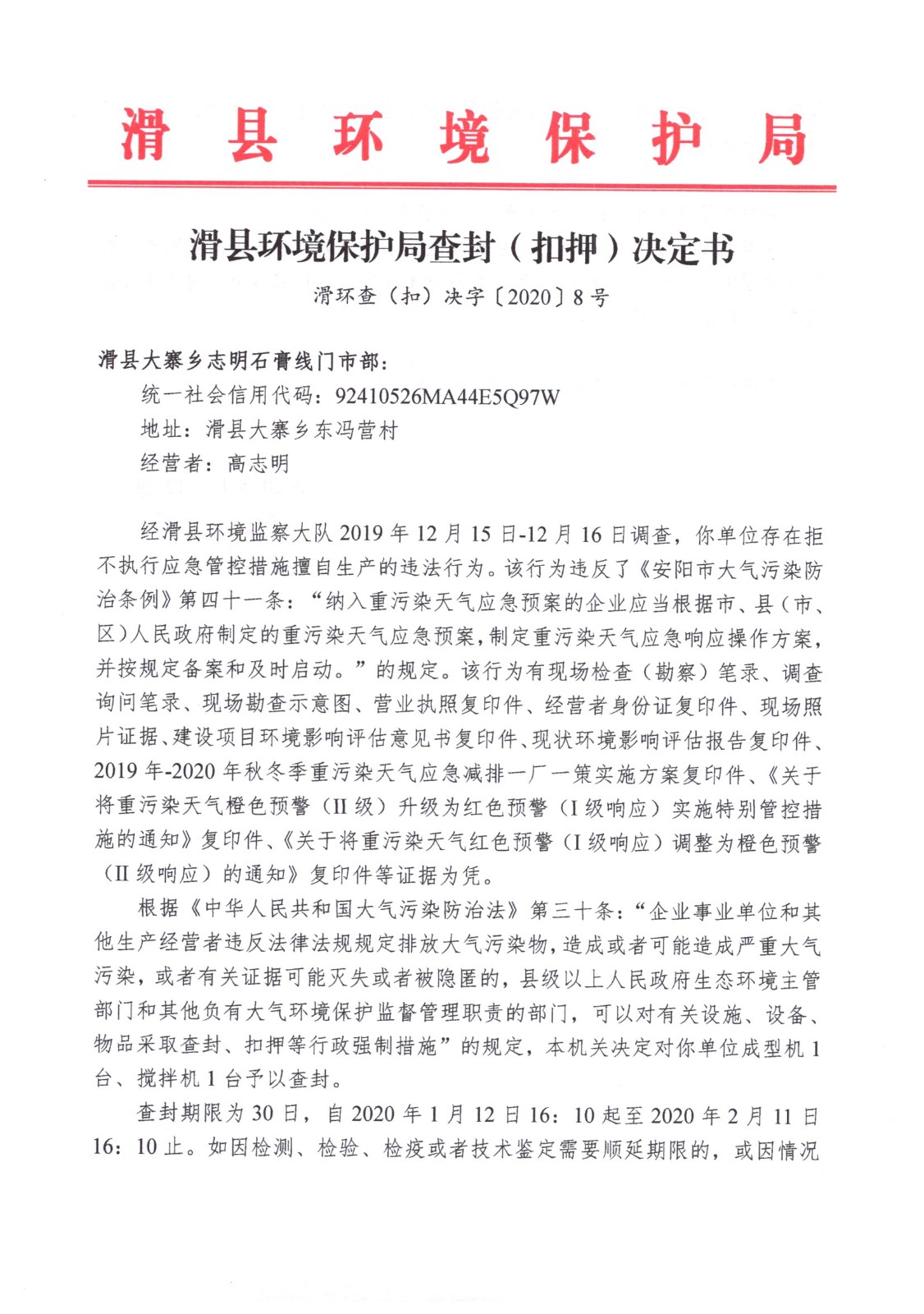 滑环查(扣)决字〔2020〕8号