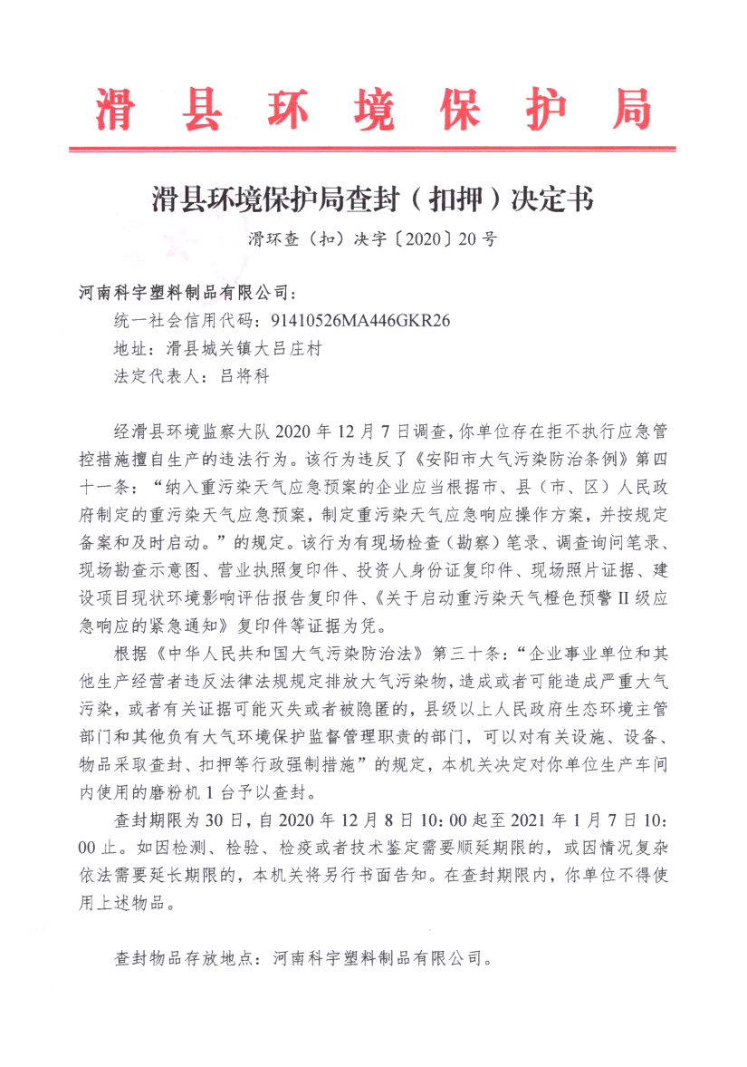 滑环查(扣)决字〔2020〕20号