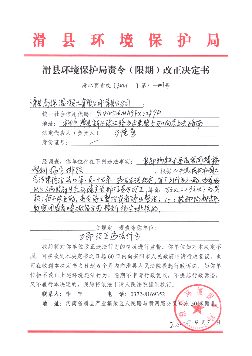 滑环罚责改〔2021〕第1-7号
