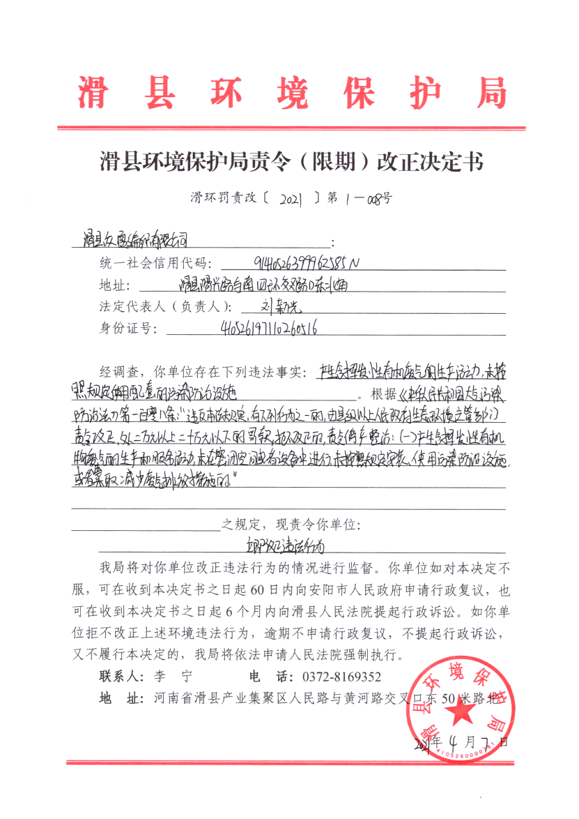 滑环罚责改〔2021〕第1-8号