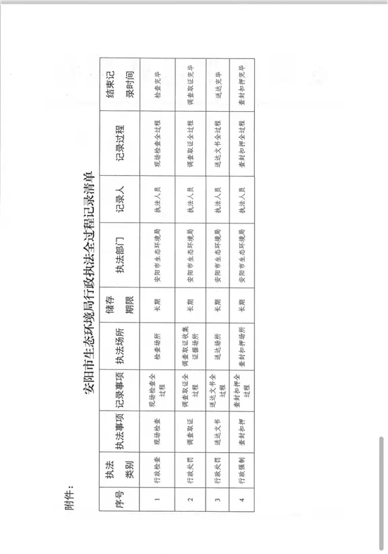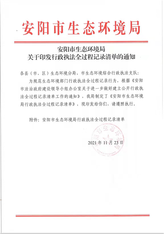 安阳市生态环境局关于印发行政执法全过程记录清单的通知