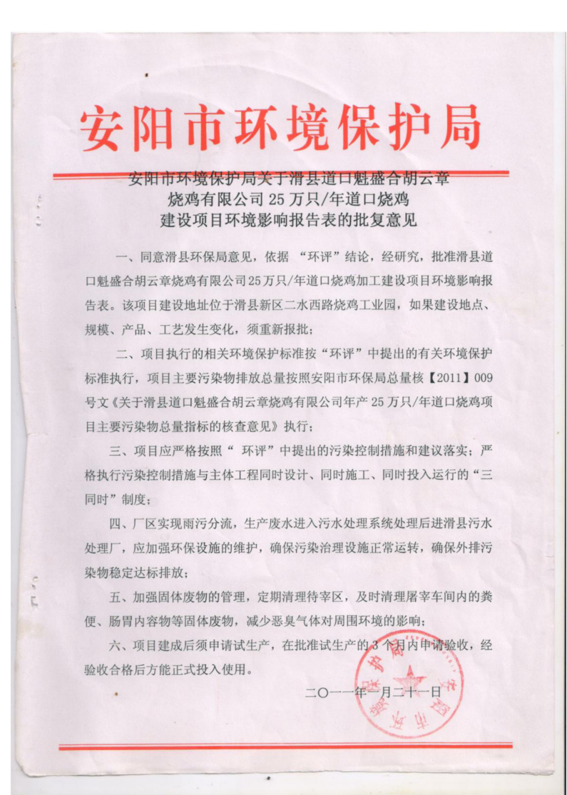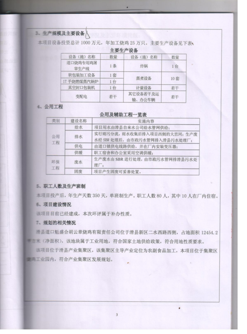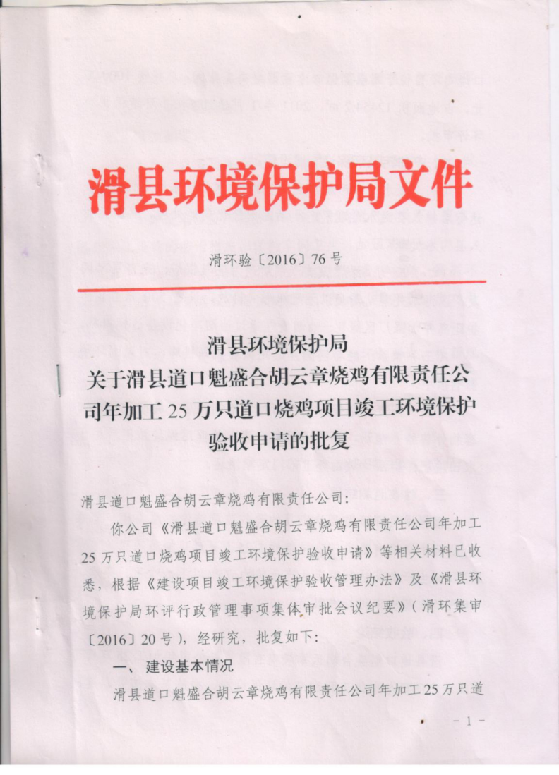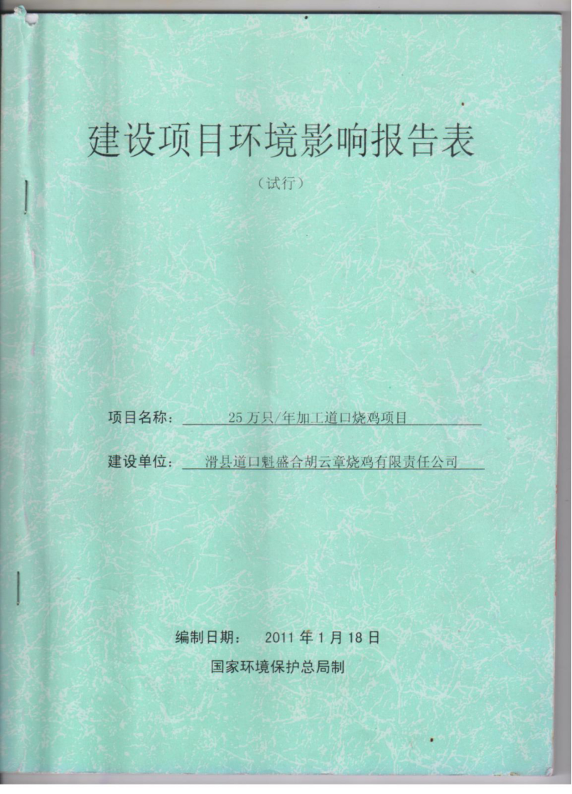 关于滑县道口魁盛合胡云章烧鸡有限责任公司年产25万只/年加工道口烧鸡项目环评公示