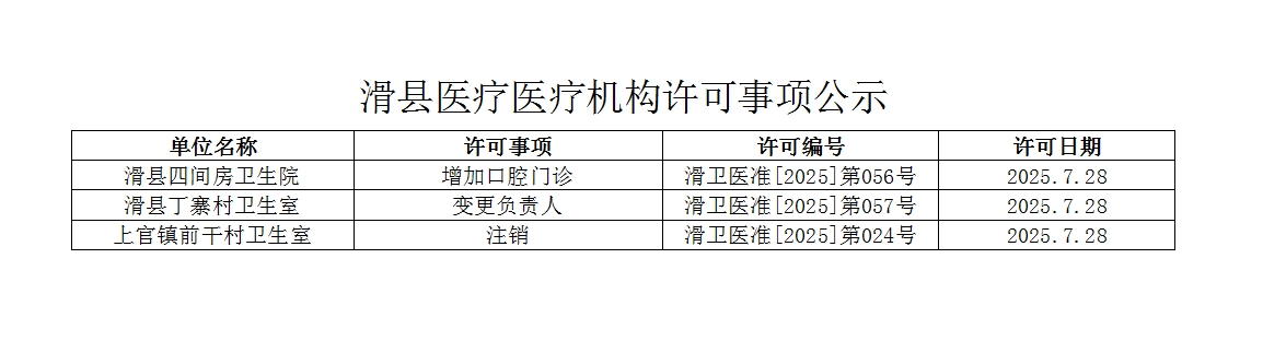 滑县医疗机构许可事项公示