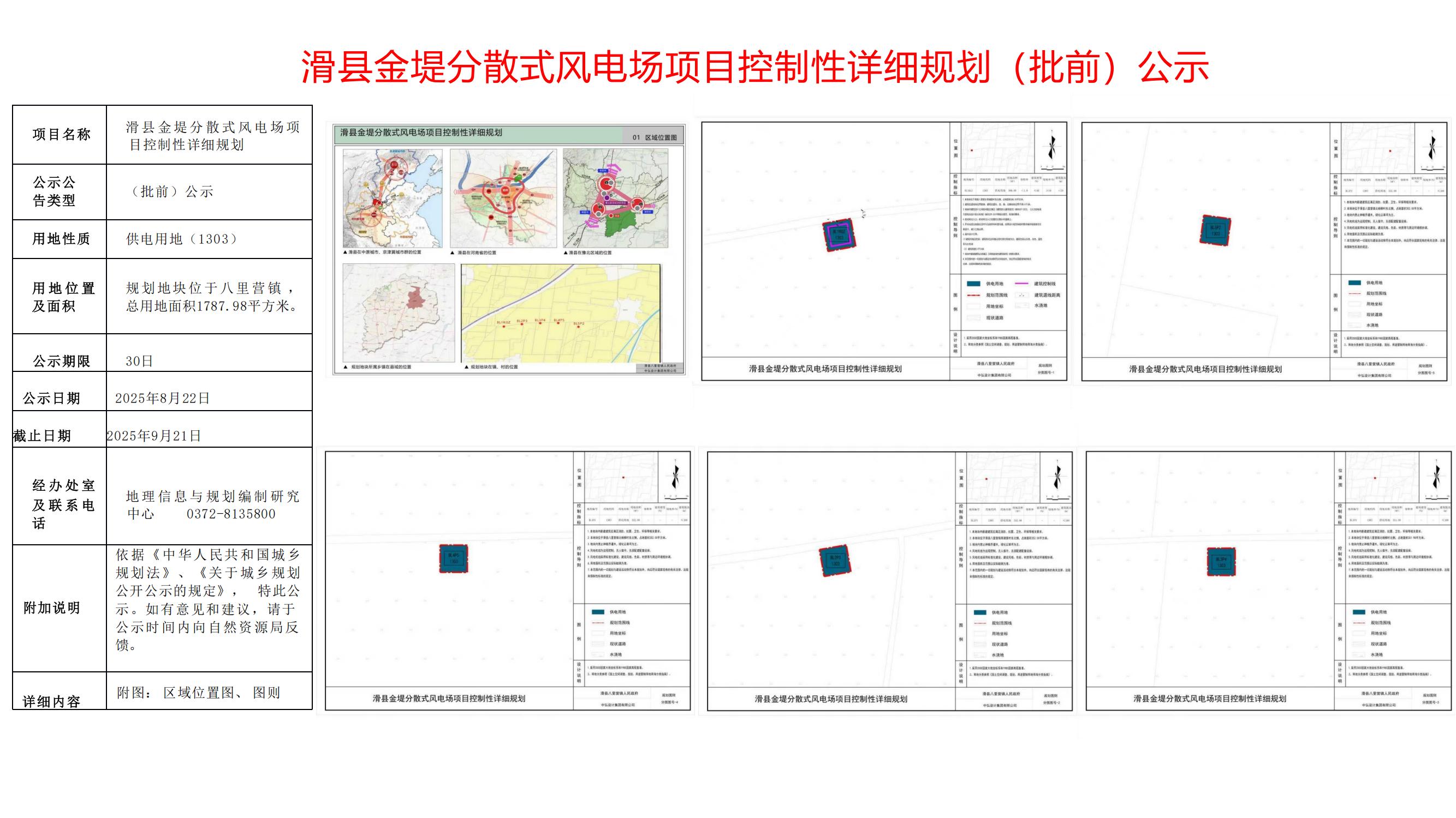 滑县金堤分散式风电场项目控制性详细规划(批前)公示