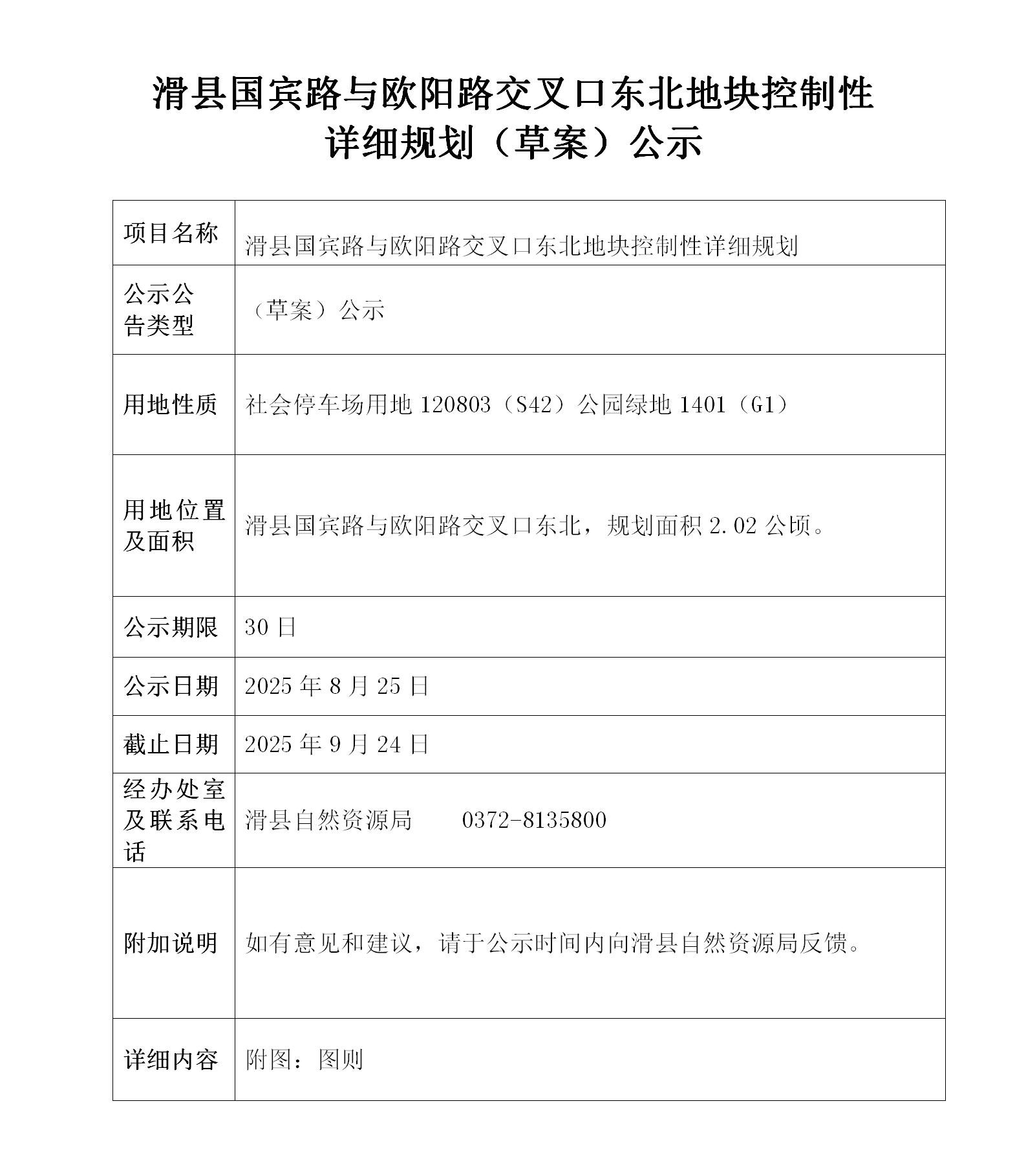 滑县国宾路与欧阳路交叉口东北地块控制性详细规划(草案)公示