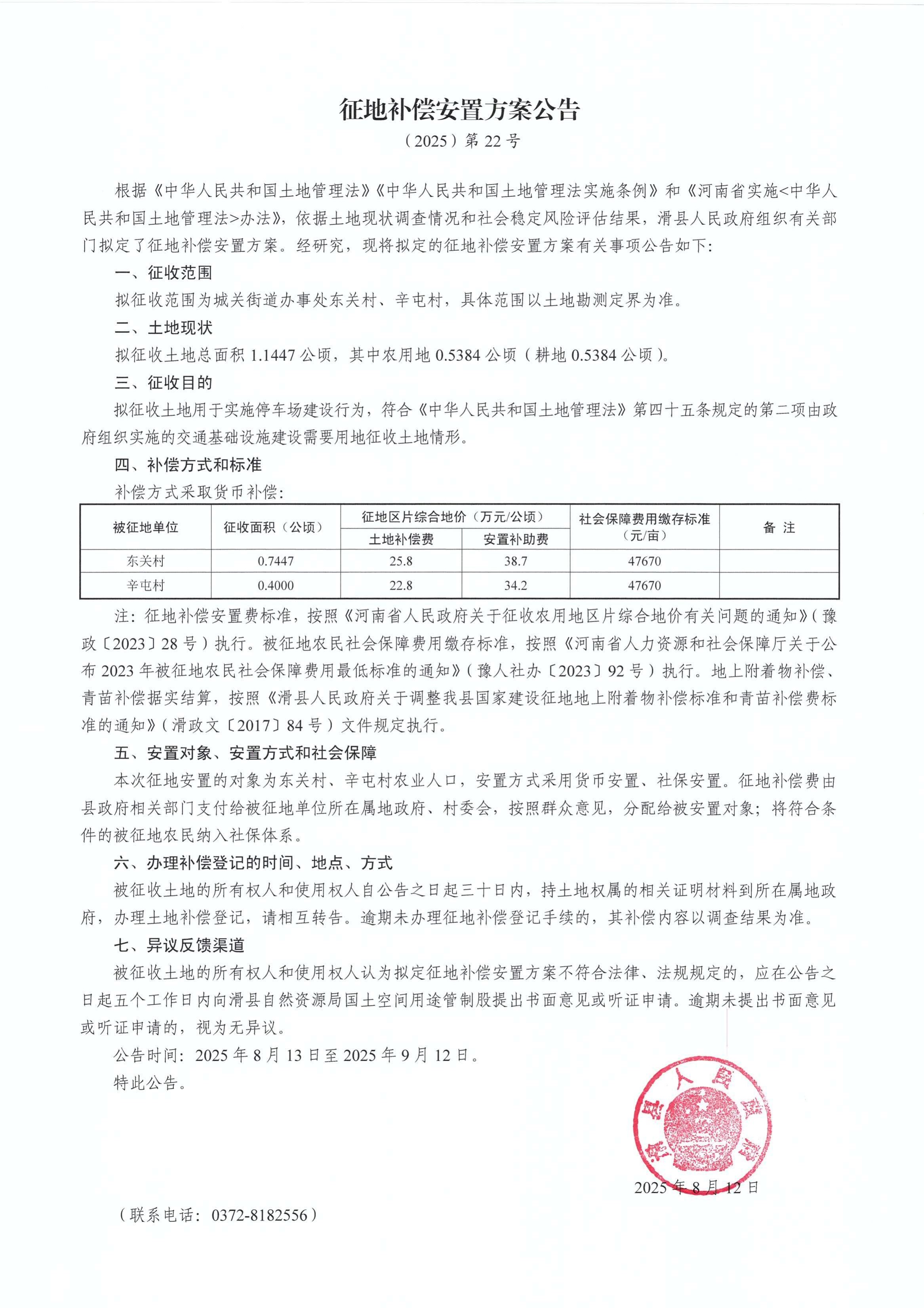 征地补偿安置方案公告(2025)第 22号