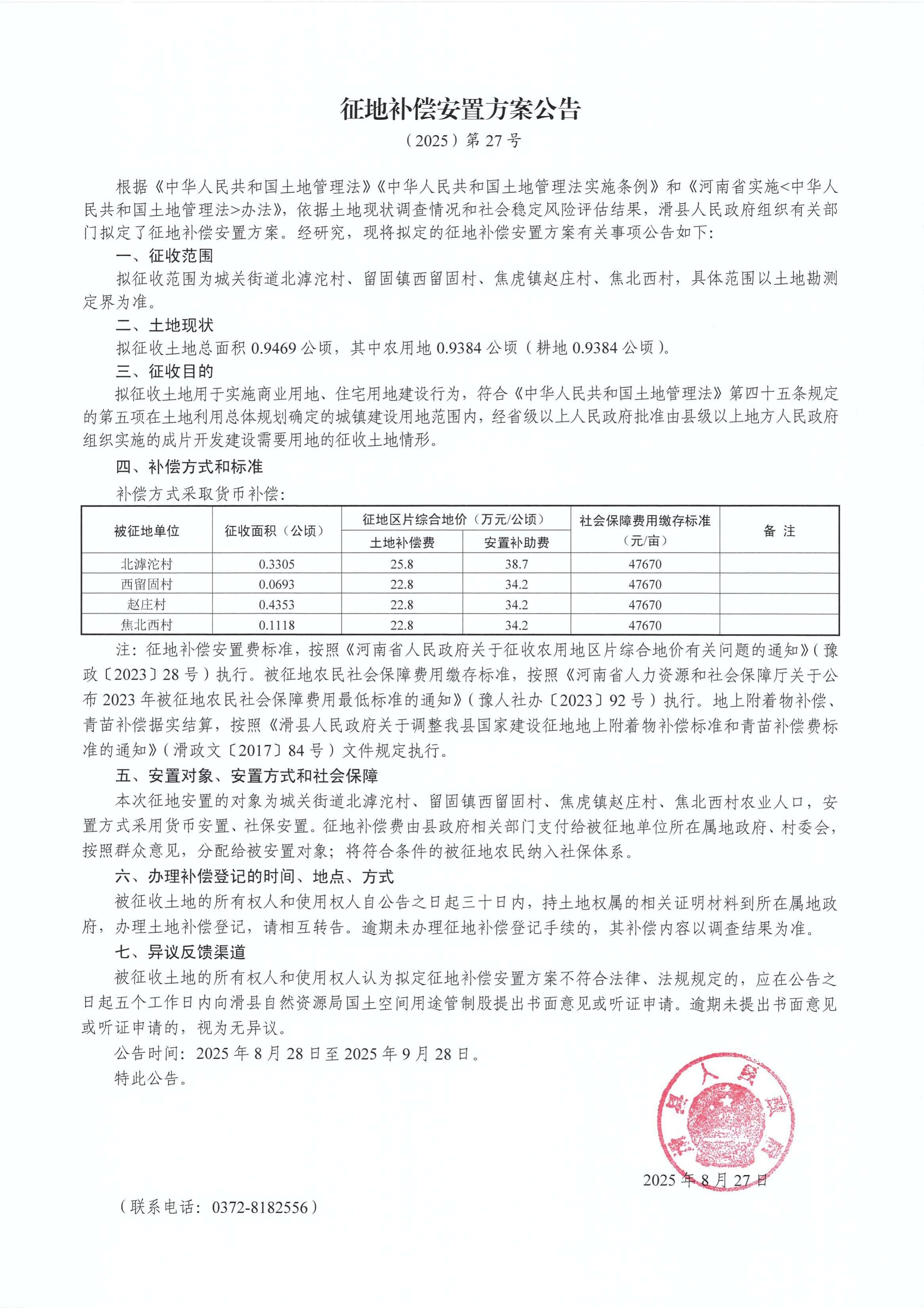 征地补偿安置方案公告(2025)第27号