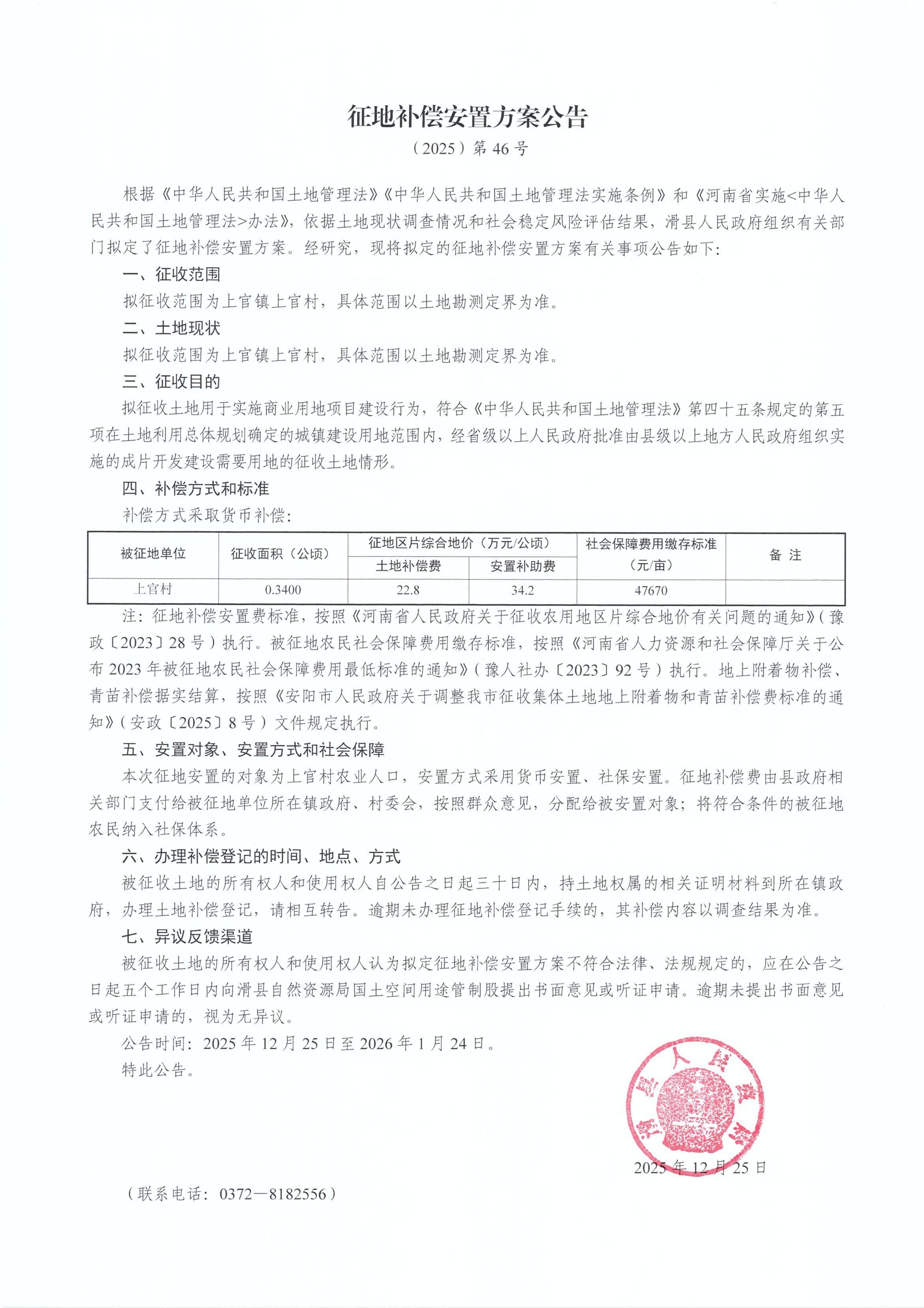 征地补偿安置方案公告(2025)第46号