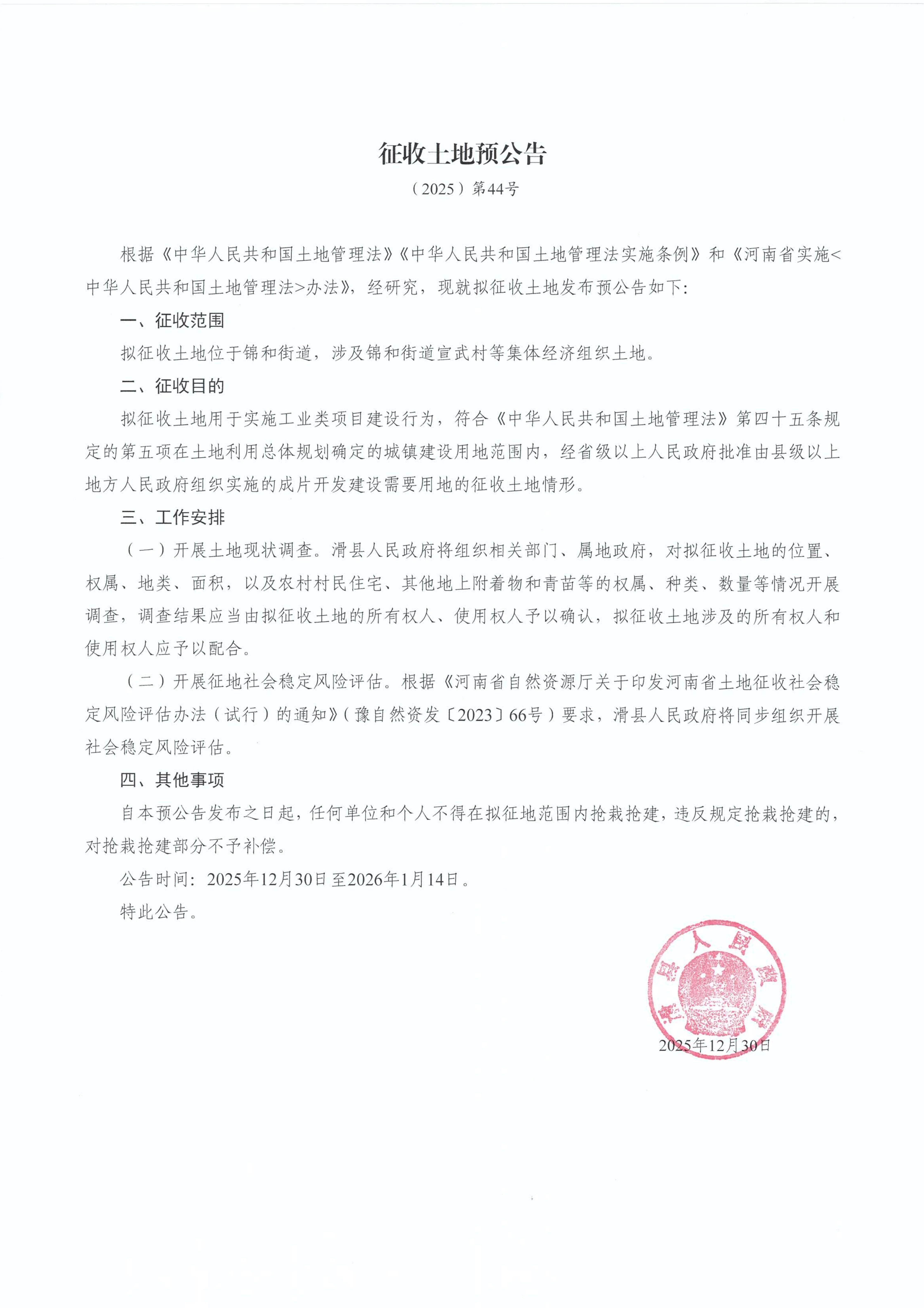 征收土地预公告(2025)第44号